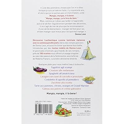 « L’une de premières choses que l’on m’a dites lorsque je suis arrivée en Italie, il y a quarante ans, et alors que je ne parlais pas un mot d’italien, a été : Mangia, mangia, ti fa bene. “Mange, mange, ça te fera du bien.” Mais, comme je n’allais pas tarder à l’apprendre puis à le vérifier régulièrement pendant des décennies, il ne s’agit de rien de plus que la reconnaissance d’une vérité élémentaire : manger est bon pour soi, et bien manger vaut mieux pour soi que mal manger. »Donna LeonDécouvrez l’authentique cuisine familiale italienne avec le commissaire Brunetti, héros des romans policiers de Donna Leon, et aussi fin limier que bonne fourchette. Introduites par des textes inédits de Donna Leon et ponctuées d’extraits gourmands de ses romans, près de 100 recettes nous offrent un voyage singulier au cœur des saveurs la Sérénissime, sous la férule de Roberta Pianaro, cuisinière vénitienne émérite.Quelques plats pour vous mettre l’eau à la bouche :Fagottini agli scampi Crostini aux aubergines Spaghetti alle melanzane Lasagne con cuori di carciofo e prosciuttoCostolette di agnello al pomodoro Zucchine alla ricottaTarte aux pommes, citron, oranges au Grand Marnier Gâteau aux poires et crème pâtissièreMangia, mangia, ti fa bene !